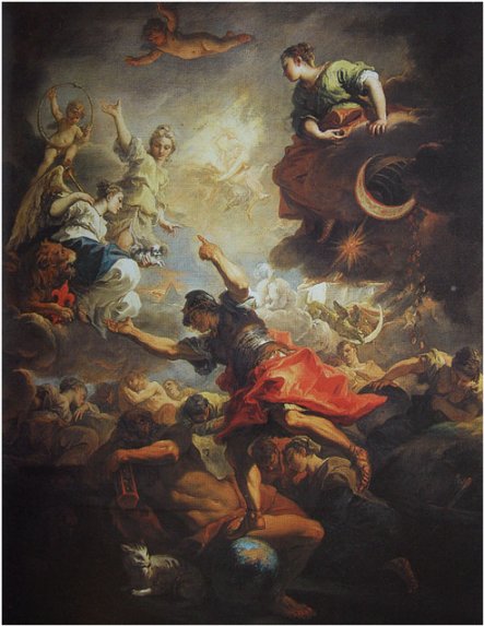 Hình 1: Tác giả khuyết danh. Con người trầm luân trong thế gian, cũng giống như đang mê ngủ. Thần bèn phái sứ giả hoặc tiên tri để thức tỉnh Thần tính/Phật tính của thế nhân, nói với họ phải trở về sự tốt đẹp chân chính trên thiên thượng.