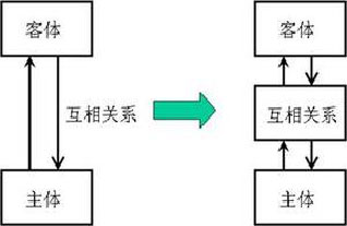 Do đó tôi luôn cho rằng là nhị nguyên tam yếu tố, thì yếu tố thứ ba này chính là quan hệ tương hỗ giữa hai nguyên tố. Từ đó tôi đem “quan hệ tương hỗ” coi như là một yếu tố để nghiên cứu. Loại nhận thức này của tôi đã có thể tìm thấy bằng chứng trong lý luận thông tin hiện đại. Ví dụ trong lý luận thông tin, chúng ta không thể đem biến lượng tương đối cố định ra làm biến lượng được, loại biến lượng này được gọi là “tồn lượng”; ngoài ra, chúng ta còn có dòng lưu chuyển thông tin gọi là “lưu lượng”. “Dòng thông tin” hoặc “lưu lượng” cũng biểu thị một “quan hệ tương hỗ” giữa các yếu tố cố định, là một lượng quan hệ, là biến lượng có thể nghiên cứu hoặc phân tích độc lập. Xin xem Hình 7. Tôi không muốn sử dụng thuật ngữ ‘nhị phân pháp’ về phân chia vật chất và tinh thần nữa, do đó tôi sử dụng hai thuật ngữ là ‘chủ thể’ và ‘khách thể’ để thay thế.