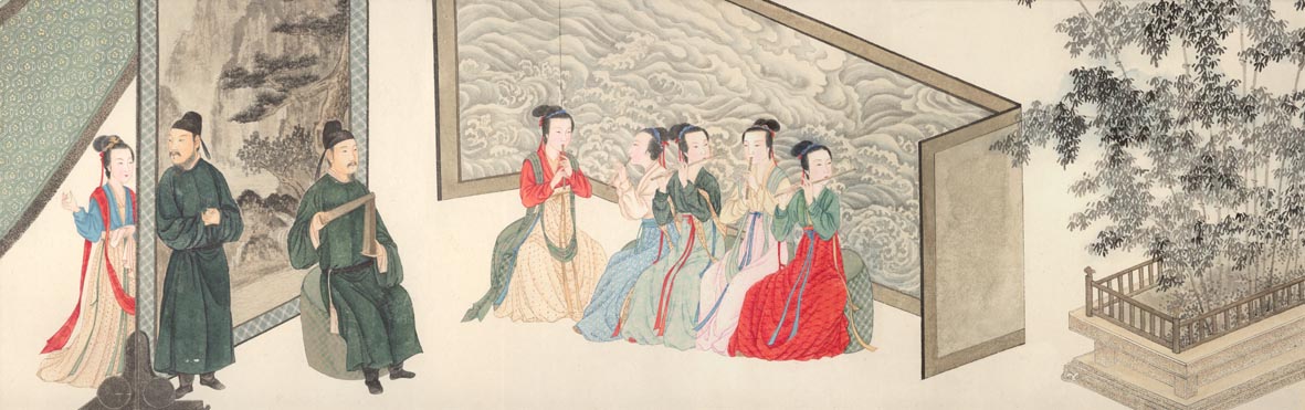 Trong bức tranh này, tác giả đã vận dụng phương thức kết cấu truyền thống để phá vỡ khái niệm về thời gian, đem các hoạt động tiến hành tại các thời điểm khác nhau đưa vào cùng một bức họa. Nhưng mỗi đoạn lại có một tấm bình phong cách khai để tạo nên tính độc lập. Bức họa có tình tiết phức tạp, nhân vật phong phú, lại rất có thứ tự chủ-khách, mức độ đơn giản và chi tiết thích hợp, liền mạch lưu loát. Việc các nhân vật xuất hiện nhiều lần trong bức vẽ cho thấy người họa sĩ có trình độ cao về truyền thần tả chân. Bức họa dùng bút tinh tế, đường nét mượt mà tròn trịa, màu sắc tươi sáng mà trầm mặc; các tình tiết, nhân vật, hình tượng, y phục, hoa văn trong bức họa đều thống nhất, tự nhiên và hài hòa với chỉnh thể.