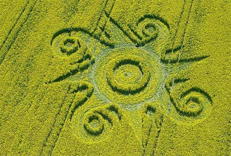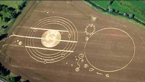 Những vòng tròn trên ruộng lúa mỳ này hiển thị đúng vị trí chín đại hành tinh trong Thái Dương hệ vào ngày 21/12/2012. Theo các chuyên gia, những vòng tròn này là có liên quan đến tiên tri của người Maya.