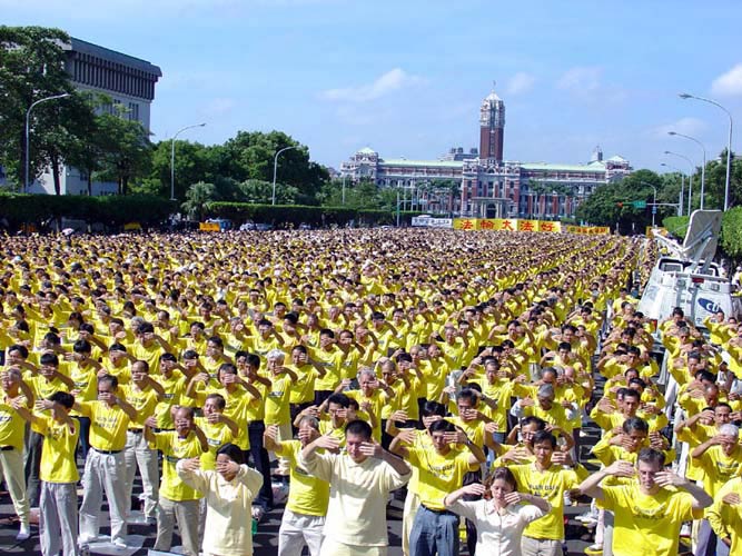 Cảnh luyện công tập thể của các học viên Pháp Luân Công tại Đài Loan (Ảnh: Chánh Kiến Net)