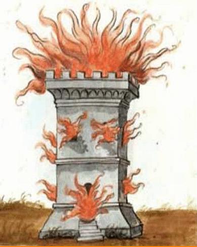 “Ngọn tháp bốc cháy”, hình vẽ số 46 trong “Cuốn sách thất lạc” của Nostradamus rất tương tự sự kiện 11/9 tại New York.