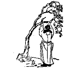 Trong bức họa là một người nâng đỡ chiếc cây đang khuynh đảo, rễ cây đã lộ ra ngoài. “Khuynh” (倾) [qīng] {nghiêng ngả} với “Thanh” (清) [qīng] {triều Thanh} là đồng âm. “Quả lựu” trên cây ám chỉ triều Thanh 16 năm sau (năm 1911) thì diệt vong, “thạch lựu” (石榴) [shí·liu], nghĩa là quả lựu, phát âm giống “thập lục” (十六) [shí·liù], nghĩa là 16.