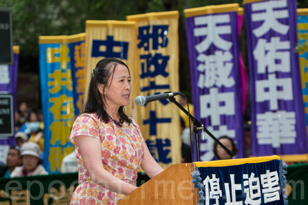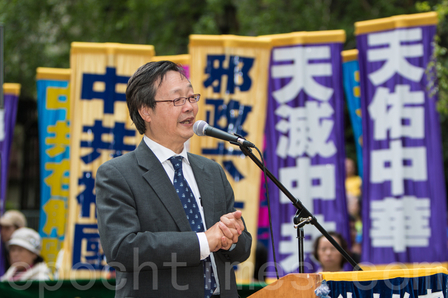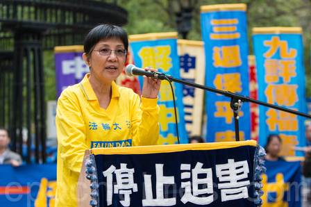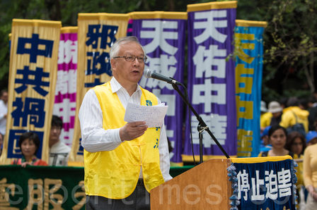 Ông Trương Nhi Bình – phát ngôn viên của Trung tâm thông tin Pháp Luân Công, ông Ngô Văn Tích – ủy viên Văn phòng thường trực Hội nhân quyền quốc tế Đức, ông Giản Hồng Chương – hội trưởng Phật học hội Pháp Luân Đại Pháp tại Hồng Kông, bà Dịch Dung – chủ tịch Trung tâm phục vụ thoái đảng toàn cầu, giáo sư Trương Cẩm Hoa thuộc Trung tâm nghiên cứu tin tức đại học Đài Loan, ông Jeremy Taylor – chủ nhiệm Liên minh gia đình châu Á, ông John Nania – chủ biên báo Đại Kỷ Nguyên tiếng Anh, ông Chu Uyển Kỳ – phát ngôn viên Đoàn luật sư nhân quyền Pháp Luân Công tại Đài Loan đã lần lượt phát biểu trong buổi mít tinh, họ tán dương các học viên Pháp Luân Công trong suốt 16 năm qua đã dùng tâm đại Thiện, đại Nhẫn để phản bức hại một cách hòa bình và lý trí. Đồng thời họ cũng kêu gọi các chính phủ, tổ chức và những cá nhân chính nghĩa ở các quốc gia hãy cùng hành động thiết thực để ngăn chặn cuộc bức hại mang tính diệt chủng của đảng cộng sản Trung Quốc (ĐCSTQ) đối với các học viên Pháp Luân Công.