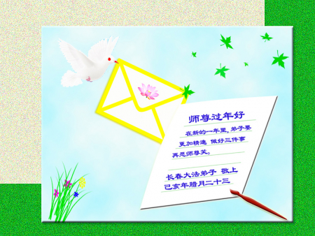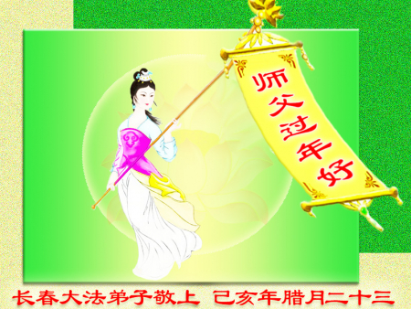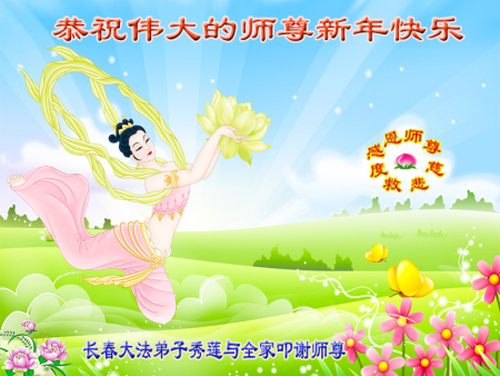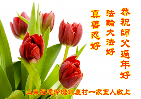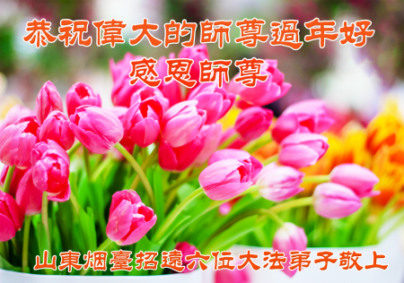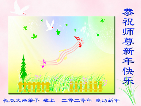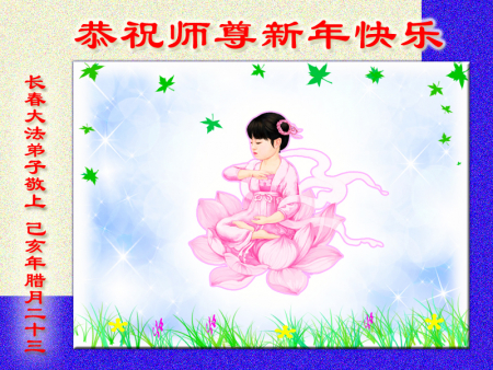 Nhân dịp Tết Nguyên đán, các đệ tử Đại Pháp từ hai nhóm học Pháp nhỏ tại khu Lộ Bắc, thành phố Đường Sơn, xin gửi lời chúc năm mới tới Ngài! Chúc mừng năm mới, Sư phụ! Ngài thật vất vả!