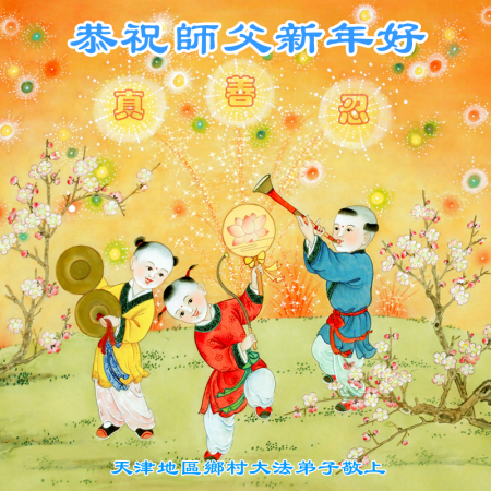 Toàn thể đệ tử Đại Pháp tại thôn Hương địa khu Thiên Tân cung chúc Sư tôn từ bi vĩ đại năm mới vui vẻ!