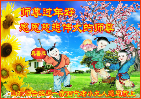 Một đệ tử Đại Pháp từ Chiêu Viễn, Sơn Đông cung chúc Sư tôn từ bi vĩ đại năm mới vui vẻ!