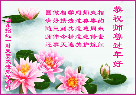 Một cặp vợ chồng đệ tử Đại Pháp từ Chiêu Viễn, Sơn Đông cung chúc Sư tôn từ bi vĩ đại năm mới vui vẻ!