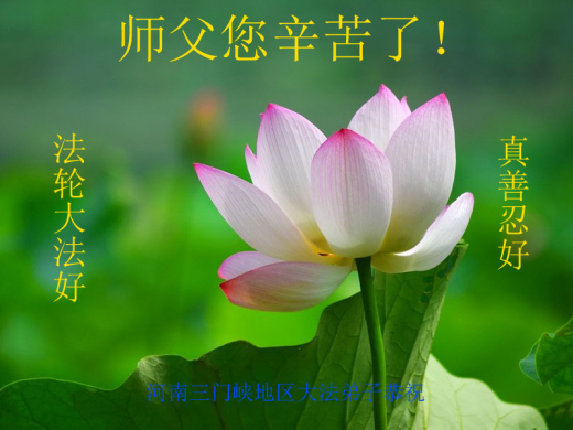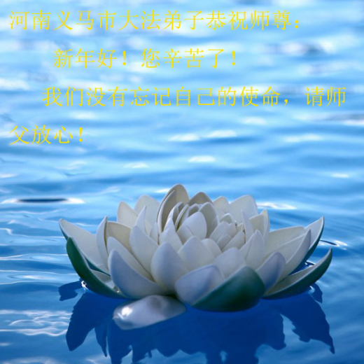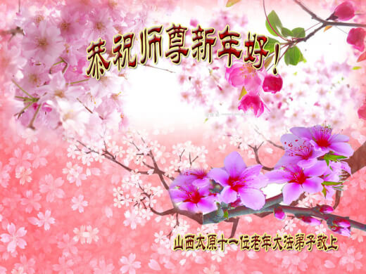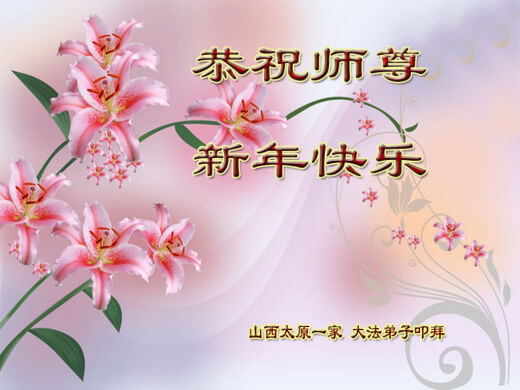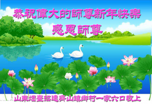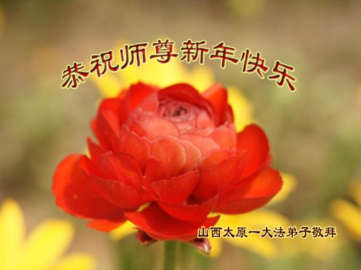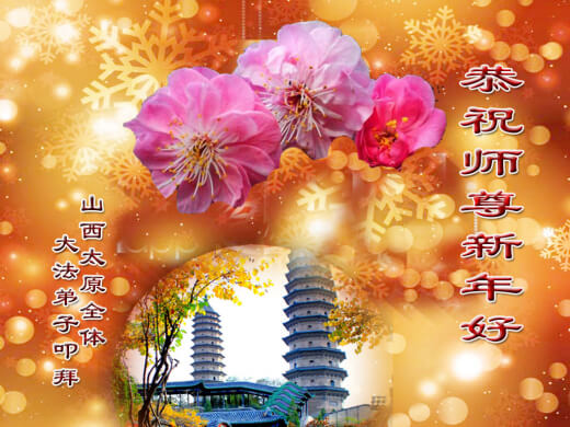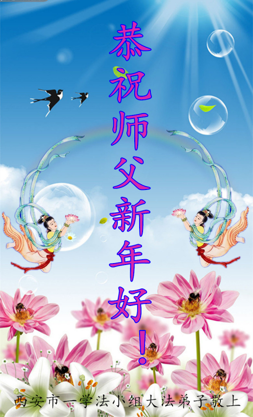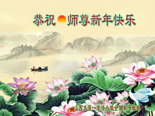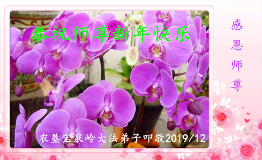 Chúng con sinh thời có thể đắc được cao đức Đại Pháp vạn cổ khó gặp này, có thể được đích thân Sư phụ vĩ đại khổ độ truyền thụ, chúng con quả là quá may mắn, lòng cảm ân từ tâm của chúng con đối với Sư phụ không có ngôn từ nào có thể biểu đạt, Sư phụ, Ngài quá cực khổ rồi! Ngài vì chúng sinh thao tận tâm, chúng con không cách nào có thể hồi báo, chỉ có sự kiên tín đối với Sư phụ, kiên tín vào Đại Pháp. Chính Pháp còn chưa kết thúc, sau này bất kể thời gian dài ngắn, bất kể hoàn cảnh bên ngoài thế nào, cũng sẽ không cải biến được cái tâm hết sức chân thành kiên định của chúng con đối với Đại Pháp, chúng con nhất định sẽ theo Sư phụ đi đến cùng. Bái lạy Sư phụ tôn kính! Cung chúc Sư phụ năm mới vui vẻ!