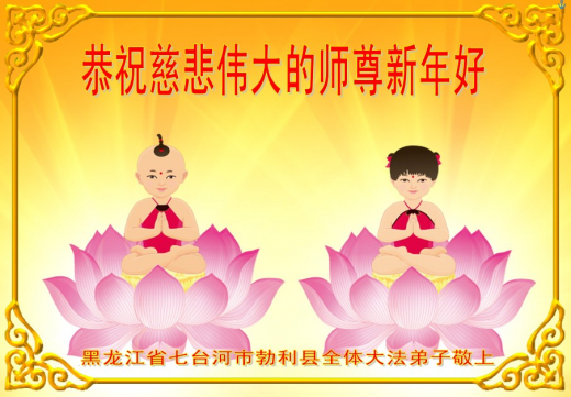 Toàn thể đệ tử Đại Pháp ở huyện Bột Lợi, thành phố Thất Thai Hà, tỉnh Hắc Long Giang cung chúc Sư tôn từ bi vĩ đại năm mới vui vẻ!