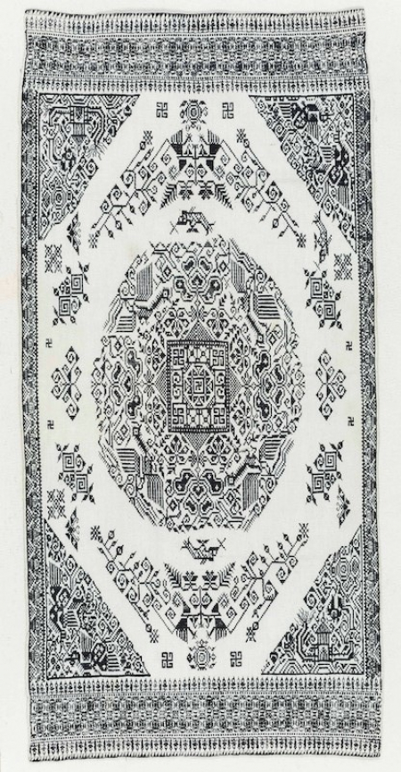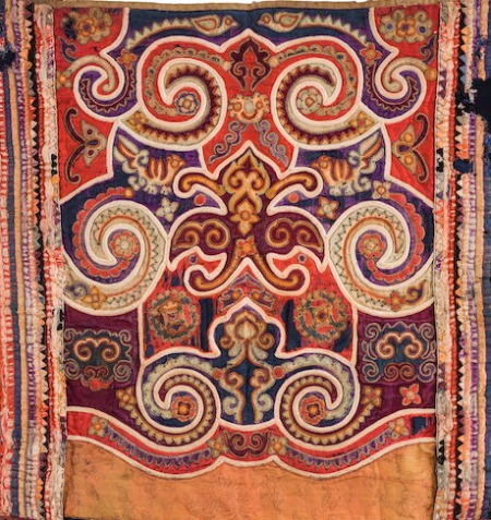 Hình 4: Khăn choàng thêu của dân tộc Động, với hình chữ Vạn ở bốn phương tám hướng của vũ trụ