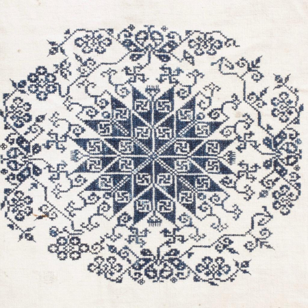 Hình 3: Phù hiệu chữ “卍” trên vải hoa nhuộm bằng sáp của dân tộc Miêu ở Quý Châu