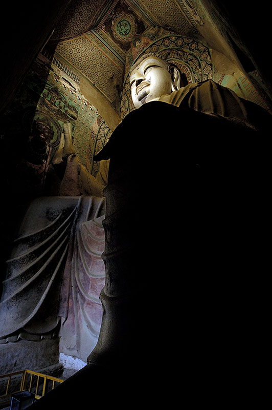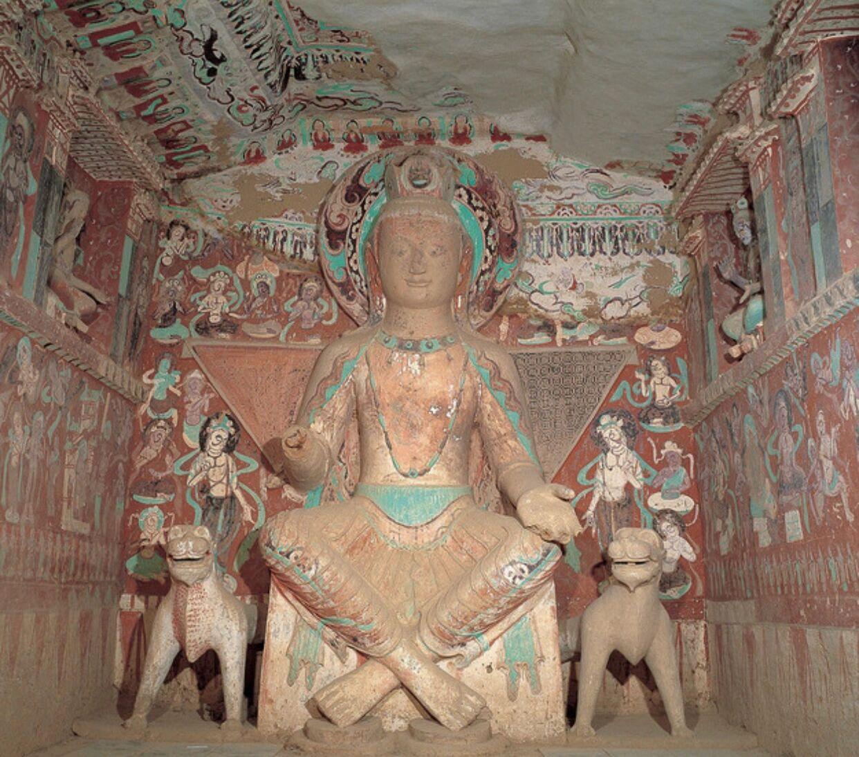 Bức tượng Di Lặc cao 3.4m đang ngồi trong tư thế vắt chân trong hang động số 275 – thời kỳ Bắc Lương (412-460) (Nguồn: Yong Zhen Tang)