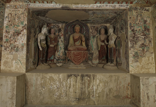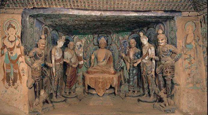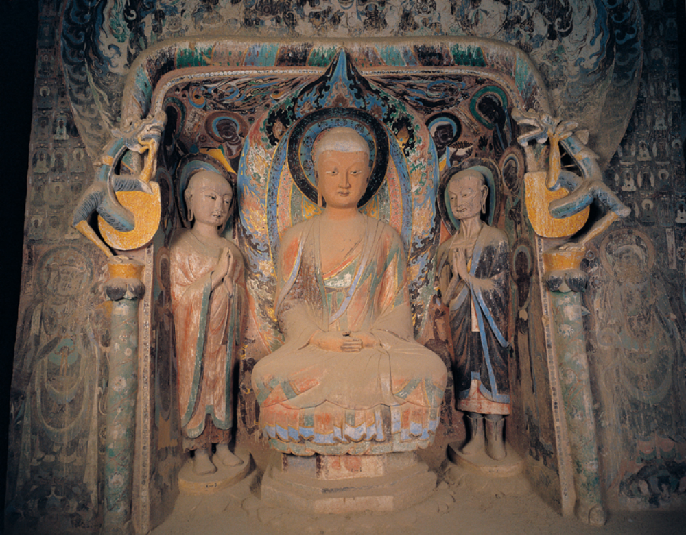 Vào thời nhà Đường (618-907), “Trinh Quán chi trị” (Trinh Quán là chỉ thời kỳ trị vì của Đường Thái Tông từ năm 626 đến năm 649), toàn quốc thống nhất, kinh tế ổn định, đặc biệt đến năm Khai Nguyên Thiên Bảo, sử sách gọi đây là thời “thịnh Đường”. Cuộc sống của bách tính trăm họ đều sung túc, văn hóa Trung Nguyên phát triển mạnh mẽ, Phật giáo được lưu truyền phổ biến trên vùng đất Trung Nguyên. Thời điểm đó đã có không ít cao tăng, đem Phật pháp hồng truyền về vùng Tây Vực, kinh sách từ Trường An, Lạc Dương không ngừng được truyền tới, nghệ thuật điêu khắc đá Mạc Cao sau khi tiếp thụ những ảnh hưởng văn hóa Trung Hoa trên các phương diện như phong cách kiến trúc, hình thức quy mô, tạo hình, nội dung bích họa đều đã phát sinh những biến đổi to lớn.