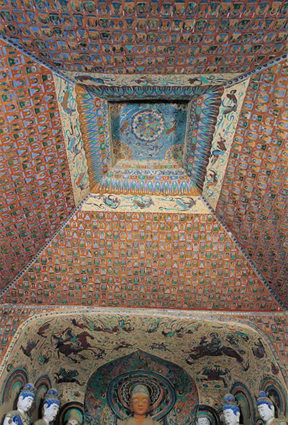 Trên mặt tường phía Tây của trần hang số 159 có hoa văn rất phức tạp (Nguồn: Dunhuang Academy)