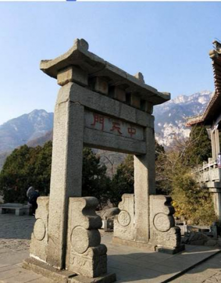 Thái Sơn có tam môn (ba cổng): đầu tiên là Nhất Thiên Môn ở phía dưới cung Hồng Môn và nằm trên đường Hồng Môn; tiếp đến là Trung Thiên Môn ở Hoàng Hiện Lĩnh; cuối cùng là Nam Thiên Môn ở điểm cuối Thập Bát Bàn. Tam môn này là thể hiện của ba mốc: nhập môn, giữa chặng đường và điểm kết thúc trên con đường tu hành. Về vị trí địa lý, Trung Thiên Môn nằm ở giữa chặng đường leo núi Thái Sơn; về vai trò của Trung Thiên Môn, ngụ ý giống như nửa chặng đường tu luyện của đệ tử Pháp Luân Công.