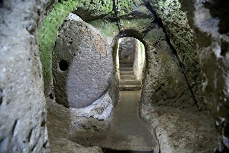 Trong tình huống có kẻ xâm lược, lối vào mỗi tầng của thành phố đều có cửa đá hình tròn nặng khoảng 1000 pound, có thể cuộn đóng lại ngăn chặn kẻ xâm lược. Những lối vào này được trang bị lỗ ở trung tâm, quân phòng thủ thông qua đó mà tấn công kẻ xâm lược. Kết cấu phòng thủ sáng tạo loại này cũng được thể hiện rõ ràng ở đường thông đạo hẹp và ngột ngạt. Người ta phải cúi xuống mới có thể đi qua đường hầm này. Loại chướng ngại này là có chủ ý, vì nó buộc kẻ xâm lược phải cúi xuống, ở trong tư thế khá bất lợi – buộc kẻ xâm lược ở mỗi phương hướng chỉ có thể tiến theo một hàng, tạo cho người phòng thủ ưu thế rõ ràng.