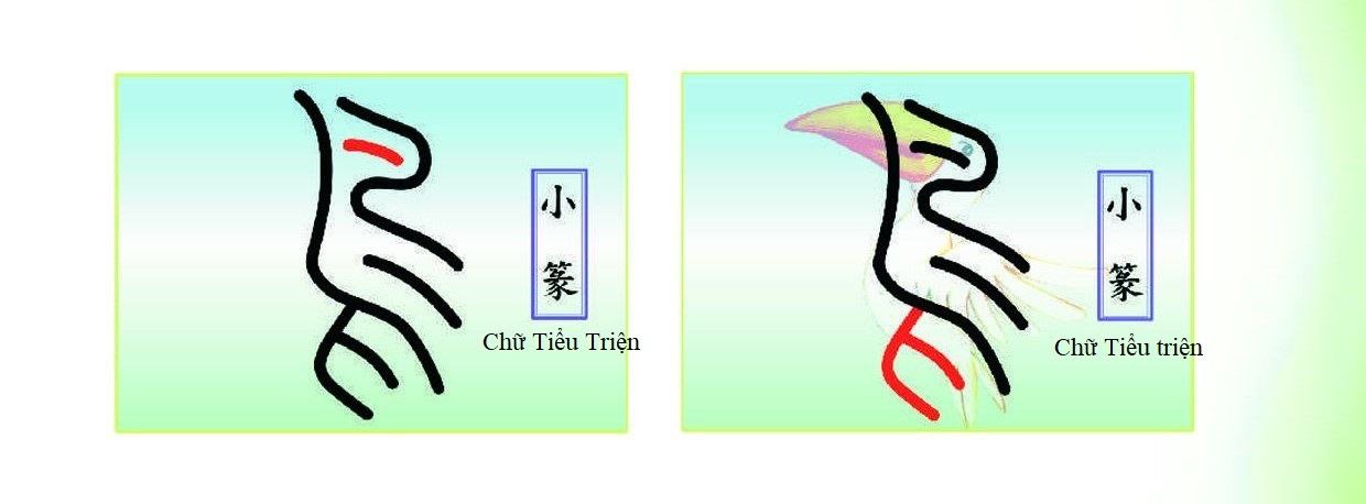 Đến thời chữ Tiểu triện, nhiều hình tượng sắc thái còn được giữ lại. “Điểu” trong chữ Tiểu triện, phần đầu thì mắt chiếm phần lớn, cánh cũng chiếm phần lớn trong chữ, phía dưới là chân của chim.