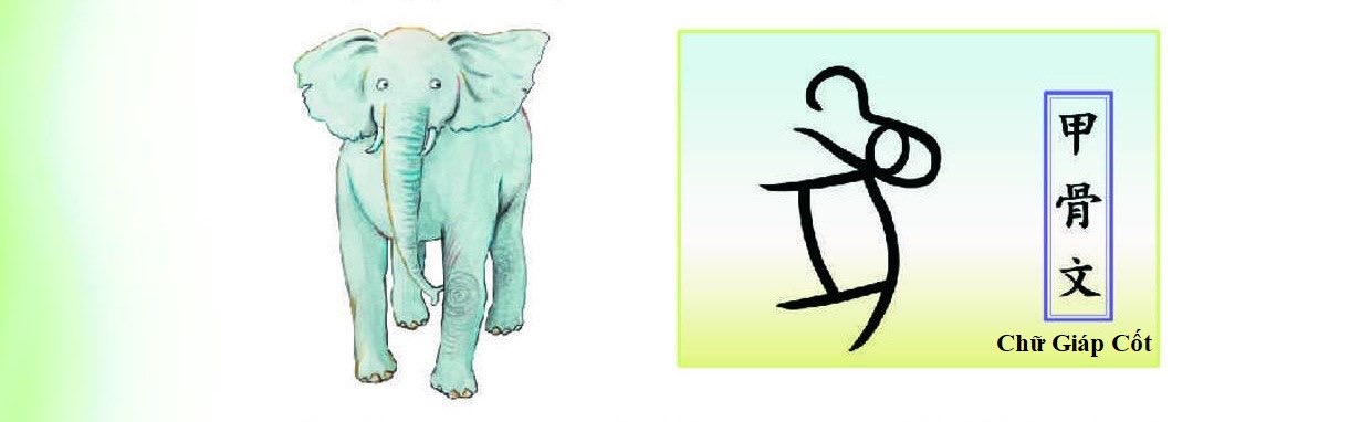 Tượng trong chữ Giáp cốt, các chữ tượng đều có điểm chung là cái mũi dài, ngà voi dài, tai to, bụng lớn, trông rất đáng yêu.
