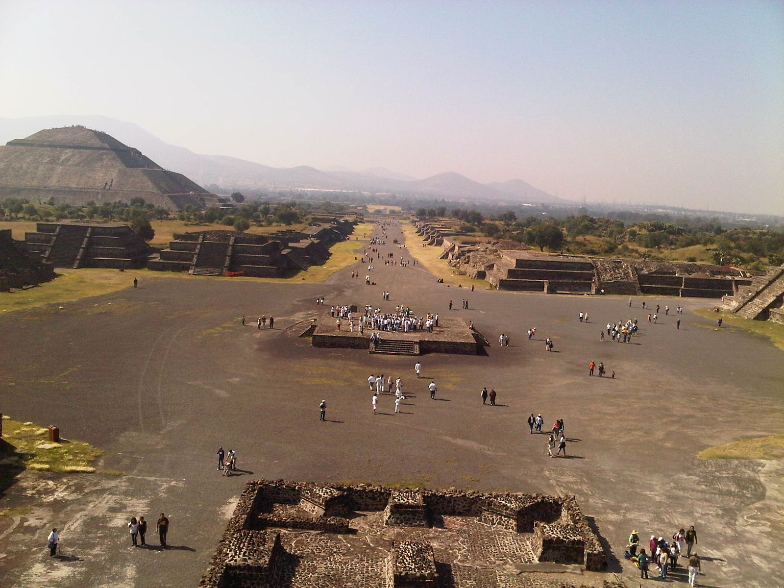 Đứng trên Kim tự tháp Mặt Trăng ngắm nhìn Quảng trường Mặt Trăng và Đại lộ Tử thần. Trước đây người Aztec dùng người sống để tế “Thần” ở đây. Người sống được dẫn đến Đài tế lễ bên dưới Kim tự tháp Mặt Trăng từ Đại lộ Tử thần. Do vậy mà có cái tên Đại lộ Tử thần này.