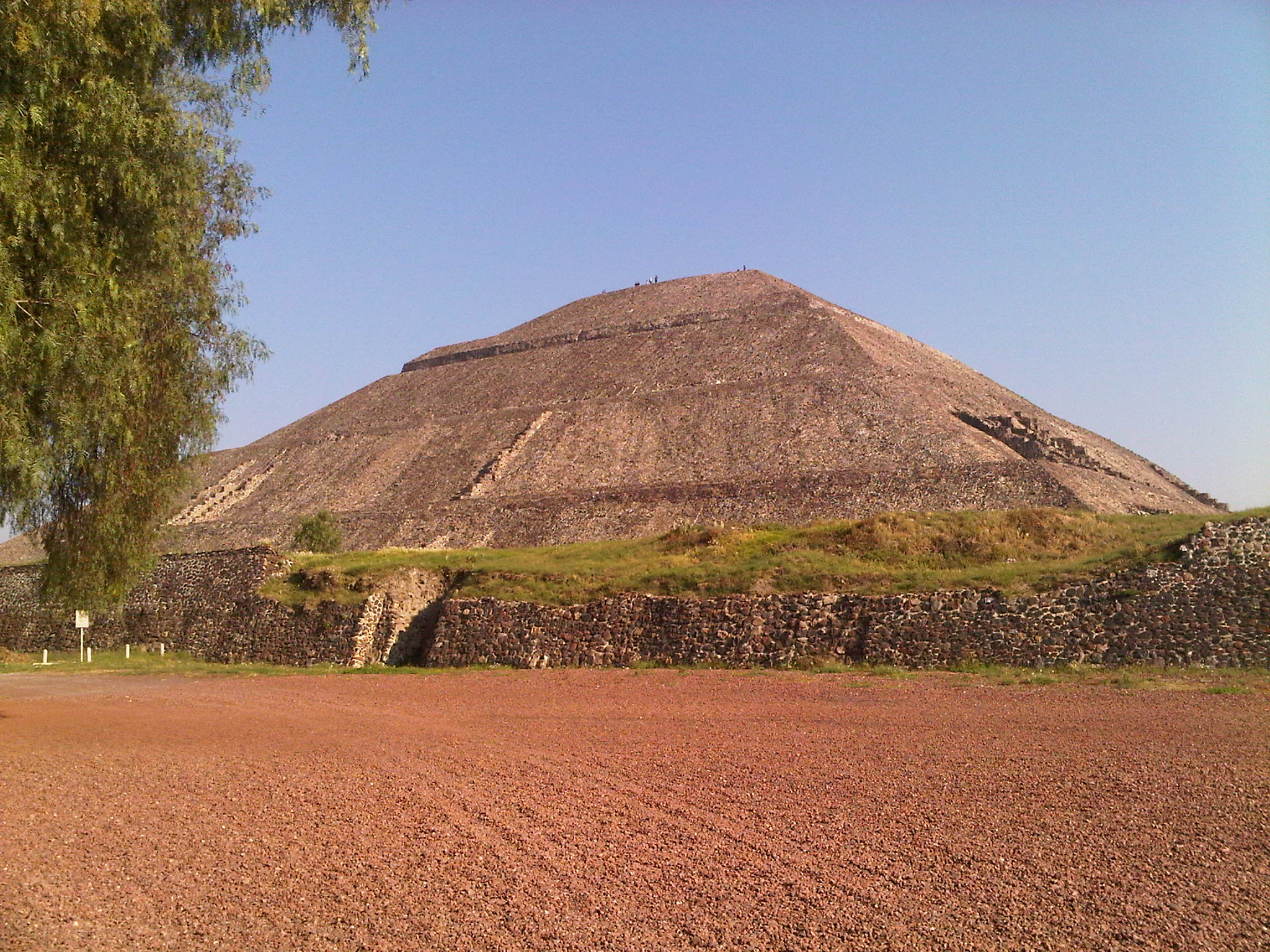 Kim tự tháp Mặt Trời của thành cổ Teotihuacan, Mexico. Thể tích 1.200.00 m³, ước tính nặng khoảng 2.500.000 tấn. Được xem là Kim tự tháp lớn thứ ba đã được phát hiện.