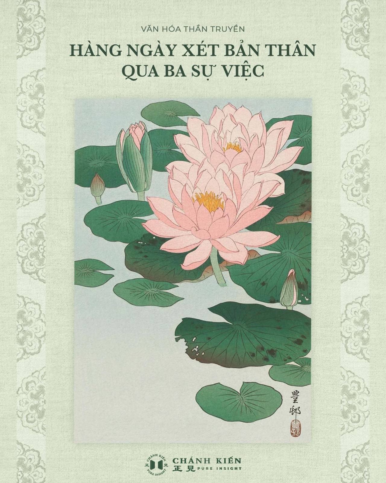 Hàng ngày xét bản thân qua ba sự việc. (Flowering Water Lily, Ohara Koson, 1920 – 1930, nguồn hình: Rijksmuseum)