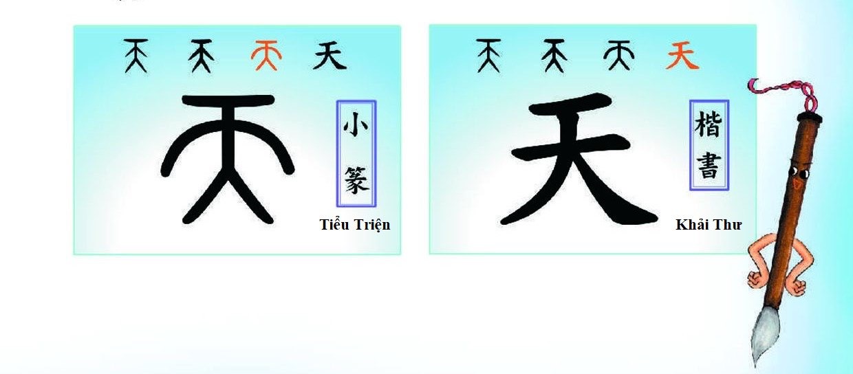 Thầy giáo Vương: Vào lớp thôi! Các em, tiết học “thuyết văn giải tự” hôm nay xin mời ông Bút Lông đến nói về chữ “Thiên” này được sáng tạo ra thế nào.