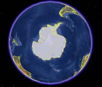 Hình 1: Lục địa Nam Cực bị đóng băng (Ảnh: google earth)