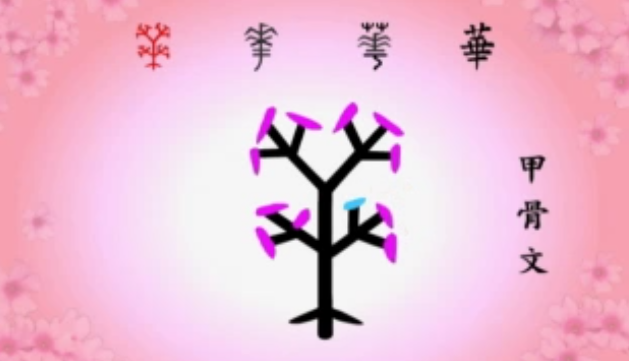 Chữ 華 trong giáp cốt văn, biểu hiện ra sự trăm hoa nở rộ, nhánh hoa phấp phới, làm cho người xem hoa cả mắt.
