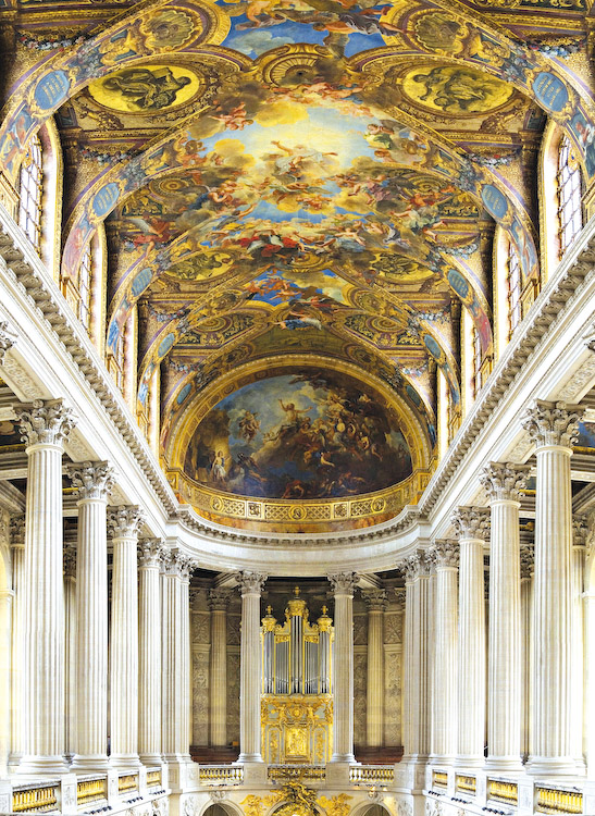 Nhà nguyện trong Cung điện Versailles ở Pháp thời kỳ Baroque. Cửa sổ bố trí song song với đỉnh tòa kiến trúc mang nhiều ánh sáng ban ngày vào sảnh đường. Toàn bộ nhà nguyện sáng sủa và bóng loáng, đột phá khỏi tông màu âm trầm, u ám của các giáo đường trước đây. Đồng thời, những bức tranh trên trần cũng dễ dàng được chiêm ngưỡng và trở nên hấp dẫn hơn nhờ ánh sáng tràn đầy.