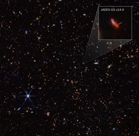 Theo báo cáo của trang space.com vào ngày 30 tháng 5 năm 2024, kính viễn vọng Webb (JWST) đã phát hiện ra hai thiên hà JADES-GS-z14-0, được cho là thiên hà lâu đời nhất và xa xôi nhất cho đến hiện nay, tiếp tục phá kỷ lục trước đó. JADES-GS-z14-0 được hình thành sau Vụ nổ lớn (big bang) có niên đại khoảng 300 triệu năm, hình thành sớm hơn 100 triệu năm so với thiên hà giữ kỷ lục trước đó.