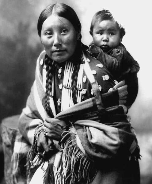 Hình: Người phụ nữ Anh-điêng cõng đứa trẻ năm 1899 (Thư viện Quốc hội, LC-USZ62-94927).