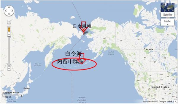 Ngoài ra, từ Google Map, chúng ta dễ dàng nhìn thấy biển Hoa Đông qua eo biển Triều Tiên, đến quần đảo Nhật Bản, quần đảo Kuril, qua mũi phía nam bán đảo Kamchatka, rồi lại đến quần đảo Aleut ở Bắc Thái Bình Dương, đi thẳng đến Alaska, quần đảo Aleut ở trên bản đồ giống như một hòn đảo cầu nổi kết nối giữa châu Á và châu Mỹ! Khoảng cách giữa các hòn đảo chỉ từ 10 đến 20 hải lý, nó thực sự là một cây cầu nổi trên Bắc Thái Bình Dương. Còn tại phía nam cách cây cầu nổi này không xa chính là dòng hải lưu Kuroshio và dòng biến nóng Thái Bình Dương nổi tiếng quanh năm chảy về phía đông. Từ Hokkaido – Nhật Bản, qua quần đảo Kuril, dọc theo bờ biển bán đảo Kamchatka, xuyên qua quần đảo Aleutian đến phía Tây Bắc Bắc Mỹ, đặc biệt khi thủy triều thuận lợi, ngồi thuyền nhỏ có thể đi đến đó được.