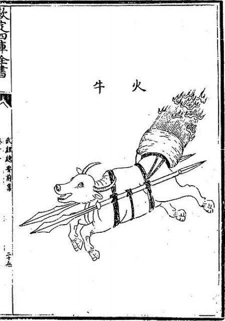 Trang bị cho trâu lửa, Tằng Công Lượng và Đinh Độ thời Tống – “Vũ Kinh Tổng Yếu” (Tranh thuộc sở hữu của cộng đồng)