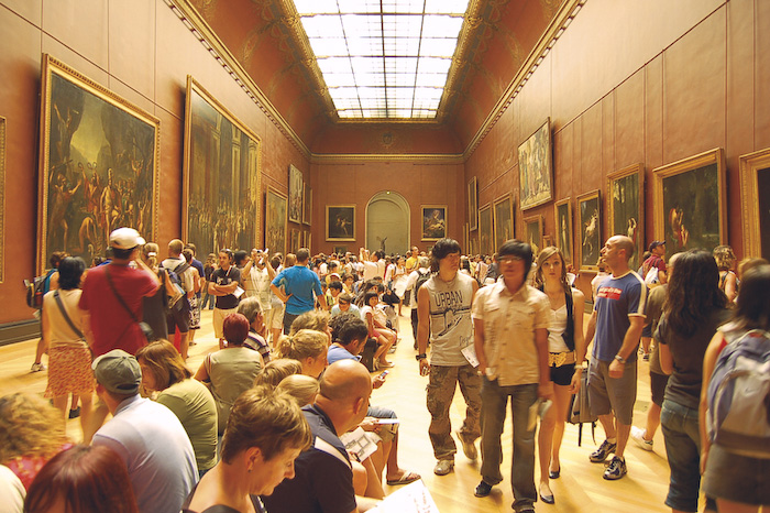 Giữa biển người đông đúc, muốn chiêm ngưỡng kỹ các bức tranh trong phòng trưng bày quả là việc khó khăn, nhưng cũng chẳng còn cách nào. Nhiều viện bảo tàng lớn lưu giữ rất nhiều tác phẩm nhưng phòng triển lãm lại không đủ rộng, không gian giữa các tác phẩm quá nhỏ khiến cho người xem phải đứng chen chúc gây tắc nghẽn, cuối cùng không ai nhìn được rõ, chỉ được đi qua một lượt như cưỡi ngựa xem hoa mà thôi. Thực tế, ngay cả khi không có nhiều người xem thì khoảng cách giữa các tác phẩm trưng bày cũng cần đủ rộng để đảm bảo tính độc lập và làm nổi bật tầm quan trọng của từng tác phẩm.