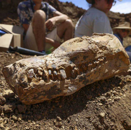 Hóa thạch được khai quật của loài Elasmosaurus, phần đầu còn khá nguyên vẹn (ảnh sao chép từ Twitter MUSEUM QUEENSLAND)