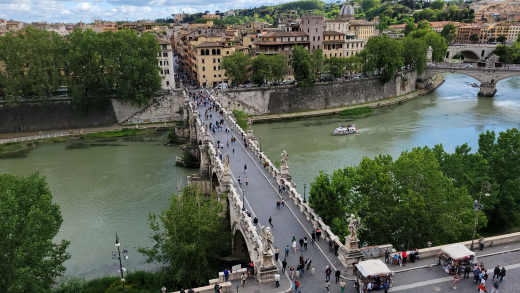 Từ đài quan sát trên đỉnh lâu đài, có thể ngắm nhìn khung cảnh tuyệt đẹp của thành cổ La Mã và hai bên bờ sông Tiber. (Charlie Lu/The Epoch Times)