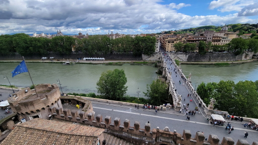 Từ đài quan sát trên đỉnh lâu đài, có thể ngắm nhìn khung cảnh tuyệt đẹp của thành cổ La Mã và hai bên bờ sông Tiber. (Ảnh: Charlie Lu/The Epoch Times)