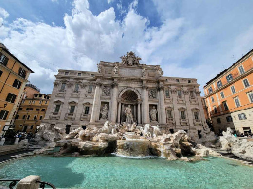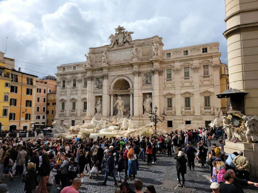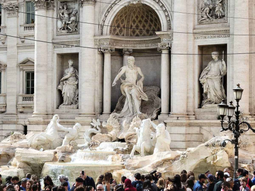 Đài phun nước Trevi nổi tiếng bởi thiết kế độc đáo và những tác phẩm điêu khắc tinh xảo. (Ảnh: Charlie Lu/The Epoch Times)