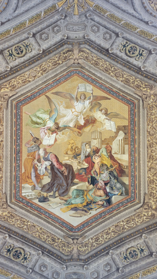 Những bức họa trên vòm trần nhà tuyệt đẹp ở Bảo tàng Vatican. (Ảnh: Charlie Lu/The Epoch Times)