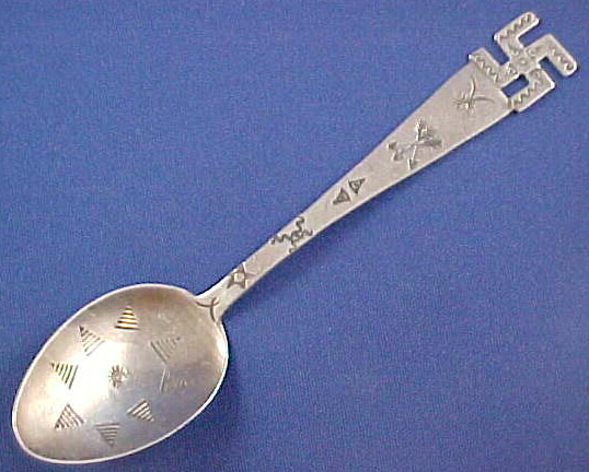 Một chiếc thìa may mắn được làm bằng bạc của người Indian da đỏ có mang ký tự “卍”.