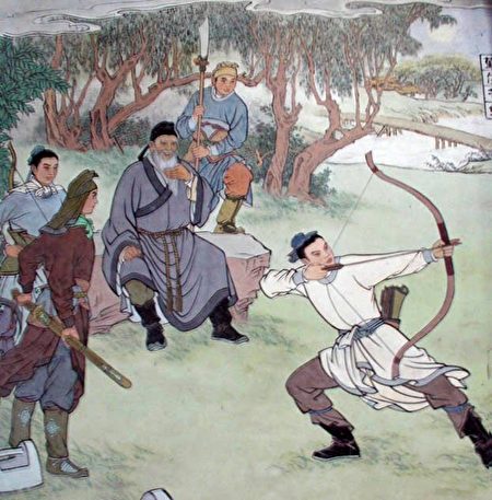 Chu Đồng dạy Nhạc Phi thuật bắn cung. (Ảnh thuộc sở hữu của cộng đồng)