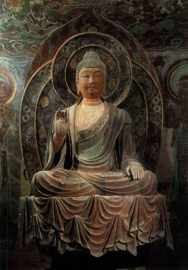 Bức tượng Phật ở hốc đầu tiên tính từ phía Đông, vách Bắc hang Mạc Cao số 259 mang dáng vẻ tự tại, siêu thoát, từ bi và sâu sắc, với y áo cà sa mỏng rủ xuống bên thân…