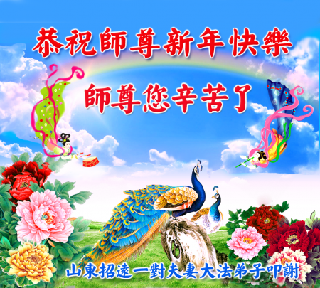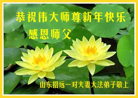 Một đôi vợ chồng đệ tử Đại Pháp ở thành phố Chiêu Viễn, tỉnh Sơn Đông kính chúc Sư tôn năm mới vui vẻ!