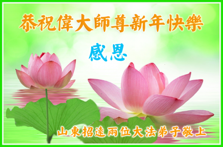 Hai đệ tử Đại Pháp ở thành phố Chiêu Viễn, tỉnh Sơn Đông kính chúc Sư tôn năm mới vui vẻ!