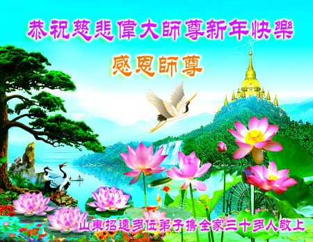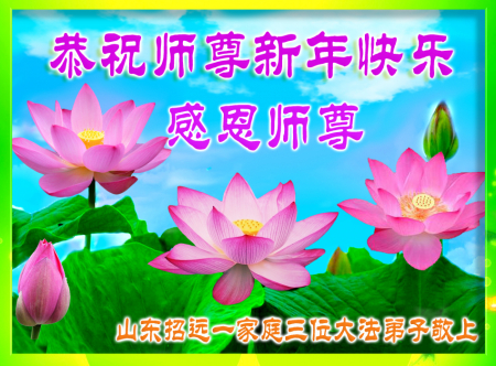Một gia đình đệ tử Đại Pháp ở thành phố Chiêu Viễn, tỉnh Sơn Đông kính chúc Sư tôn năm mới vui vẻ!