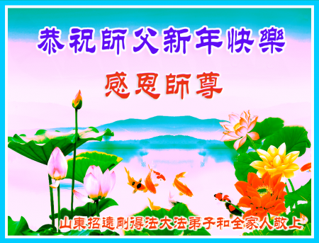 Một đệ tử Đại Pháp cùng toàn thể gia đình ở thành phố Chiêu Viễn, tỉnh Sơn Đông kính chúc Sư tôn năm mới vui vẻ!