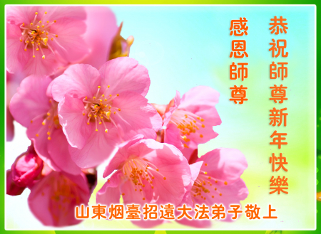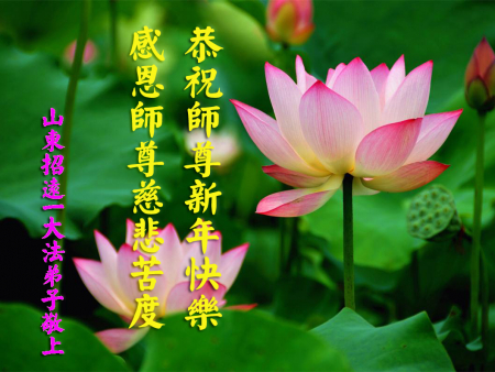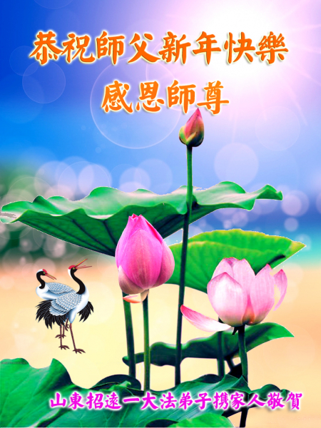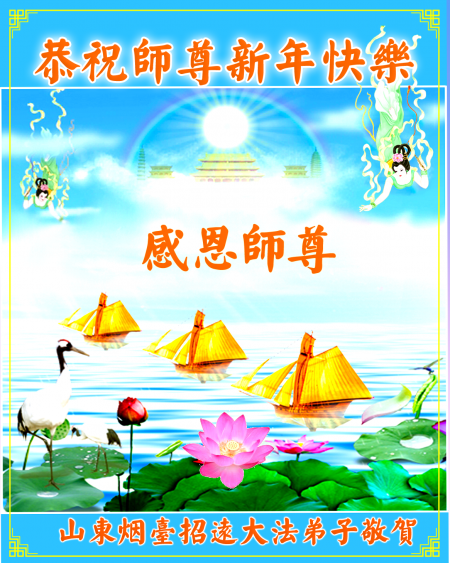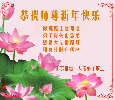 Nhân dịp năm mới đến, chúc Sư phụ năm mới vui vẻ! Cảm tạ Sư tôn không quản gian khổ đã đem Đại Pháp truyền cho chúng con, để cho chúng con bước trên con đường phản bổn quy chân, cảm ân Sư tôn từ bi cứu độ.