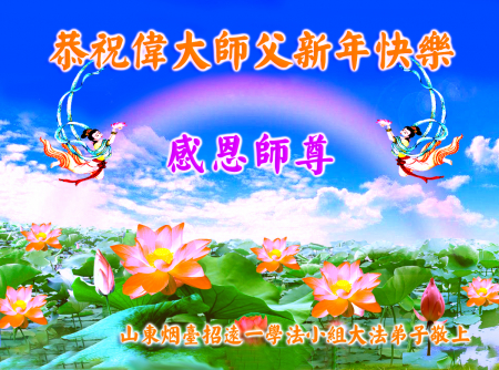 Đệ tử Đại Pháp ở một nhóm học Pháp nhỏ ở thành phố Chiêu Viễn, Yên Đài, tỉnh Sơn Đông kính chúc Sư tôn năm mới vui vẻ!