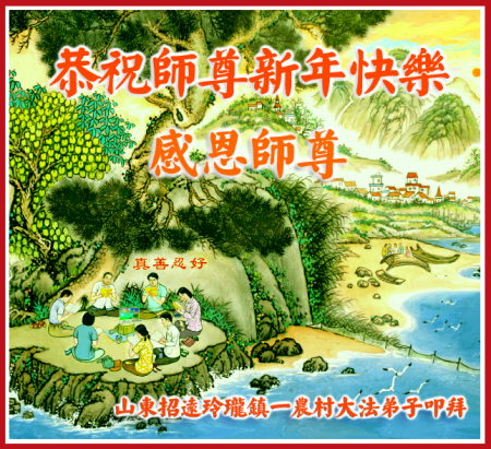 Đệ tử Đại Pháp ở một nhóm học Pháp nhỏ ở thành phố Chiêu Viễn, tỉnh Sơn Đông kính chúc Sư tôn năm mới vui vẻ!